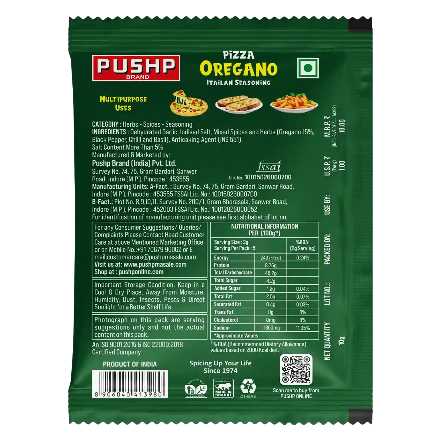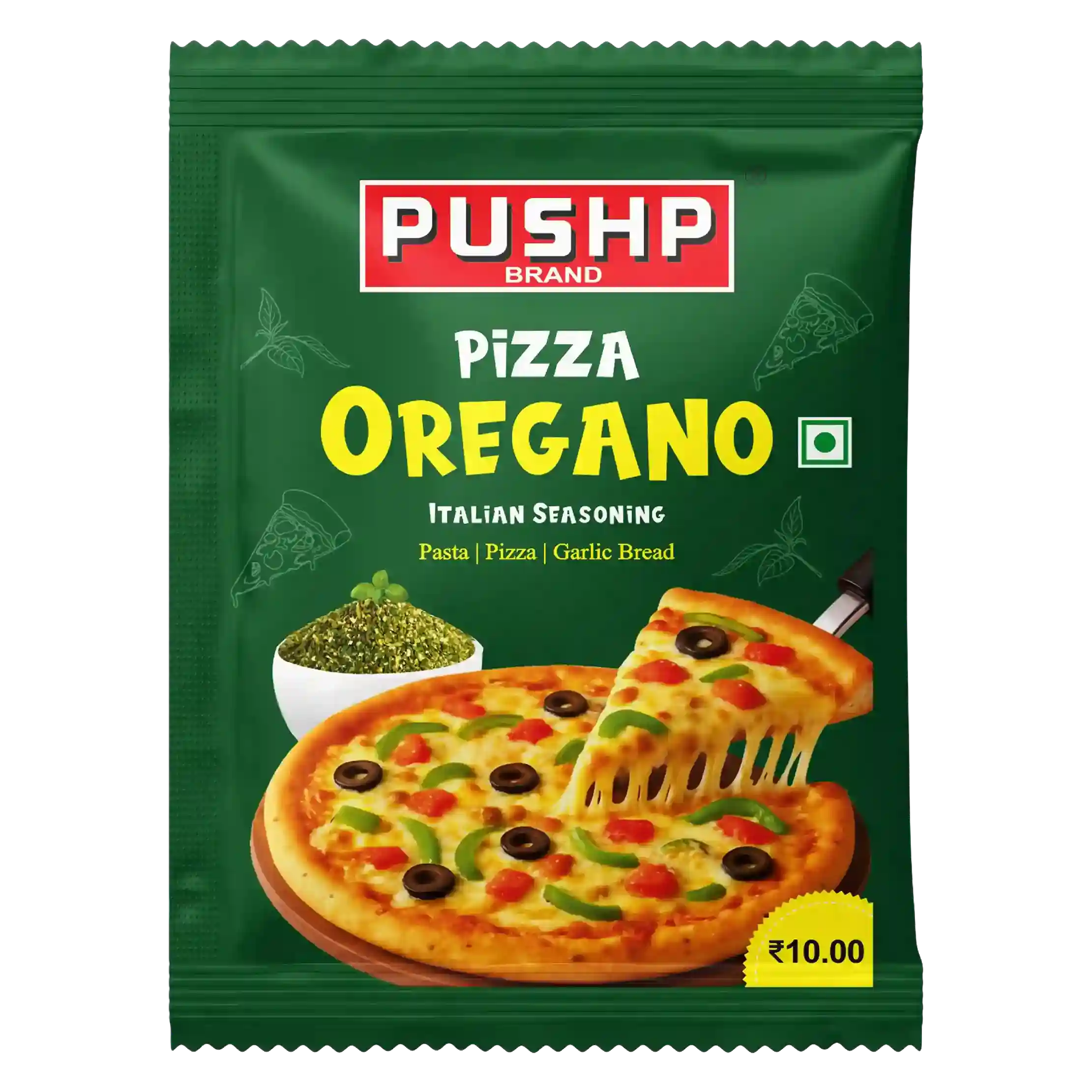 Pushp Pizza Oregano is an authentic Italian seasoning blend featuring premium dehydrated garlic, mixed spices, and herbs including oregano, black pepper, chili, and basil. Perfect for pizza, pasta, and garlic bread, this versatile seasoning brings restaurant-quality Italian flavor to your home kitchen.