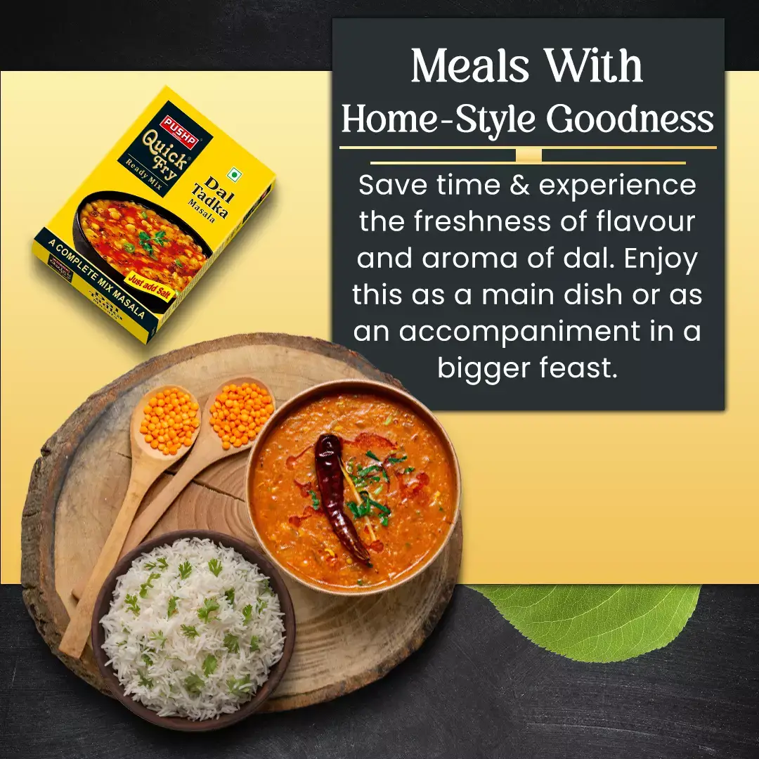 Our Dal Tadka Masala is a ready to mix masala which is a one-step solution for all the urban households. All you need to do is add this masala than some salt accordingly and you are all set to go which makes it very time saving and easy to use. With this masala in your kitchen shelf, making delicious dal tadka is a cake walk.